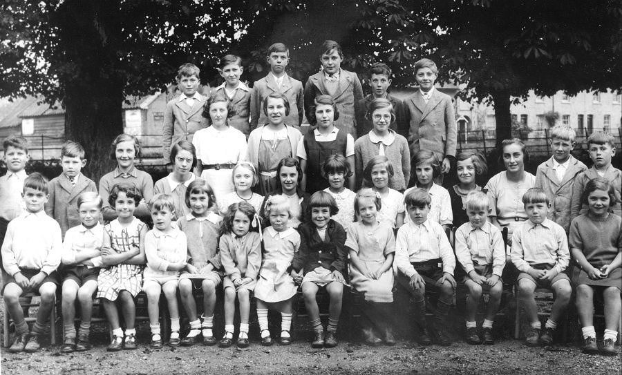 Front Row (sitting, left to right): Peter Pratt, Keith Bullen, Joan Horsfield, Freddie Blaby, (unknown girl, surname possibly Wheeler?), Betty Blaby, Janet Skinner, June Pratt, Janet Reynolds, Doug Clarke, Eric Chessum, Vic Chessum, Peggy Bullen. |